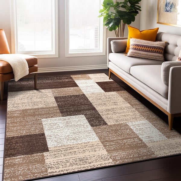 - World Rug Gallery Contemporary Distressed Boxes Area Rug